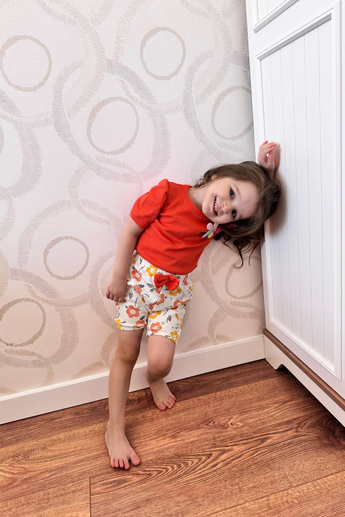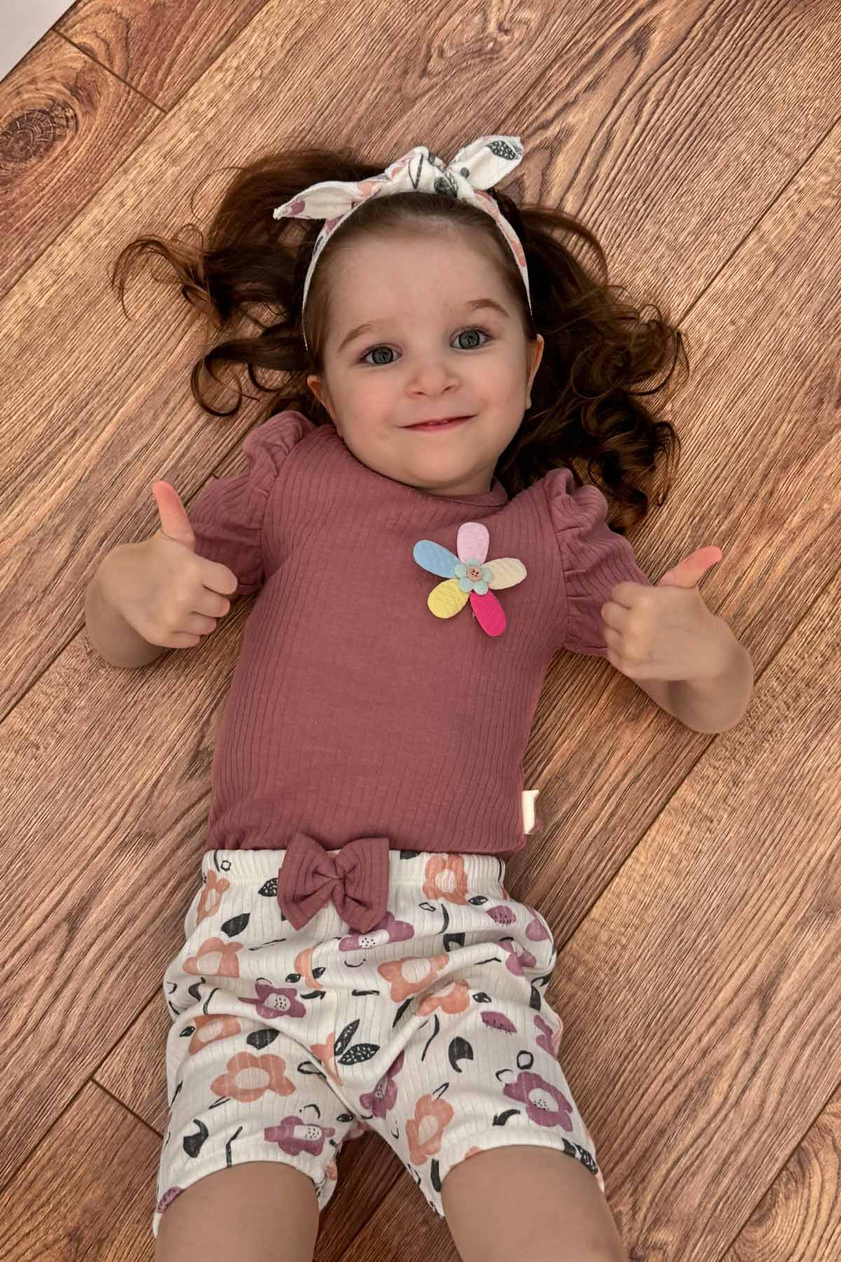 Peki Yazlık Kız Bebek Yumuşak Penye Ter Tutmayan Pamuklu Papatya Takım 2li Fiyonklu Şortlu Tişörtlü 15518