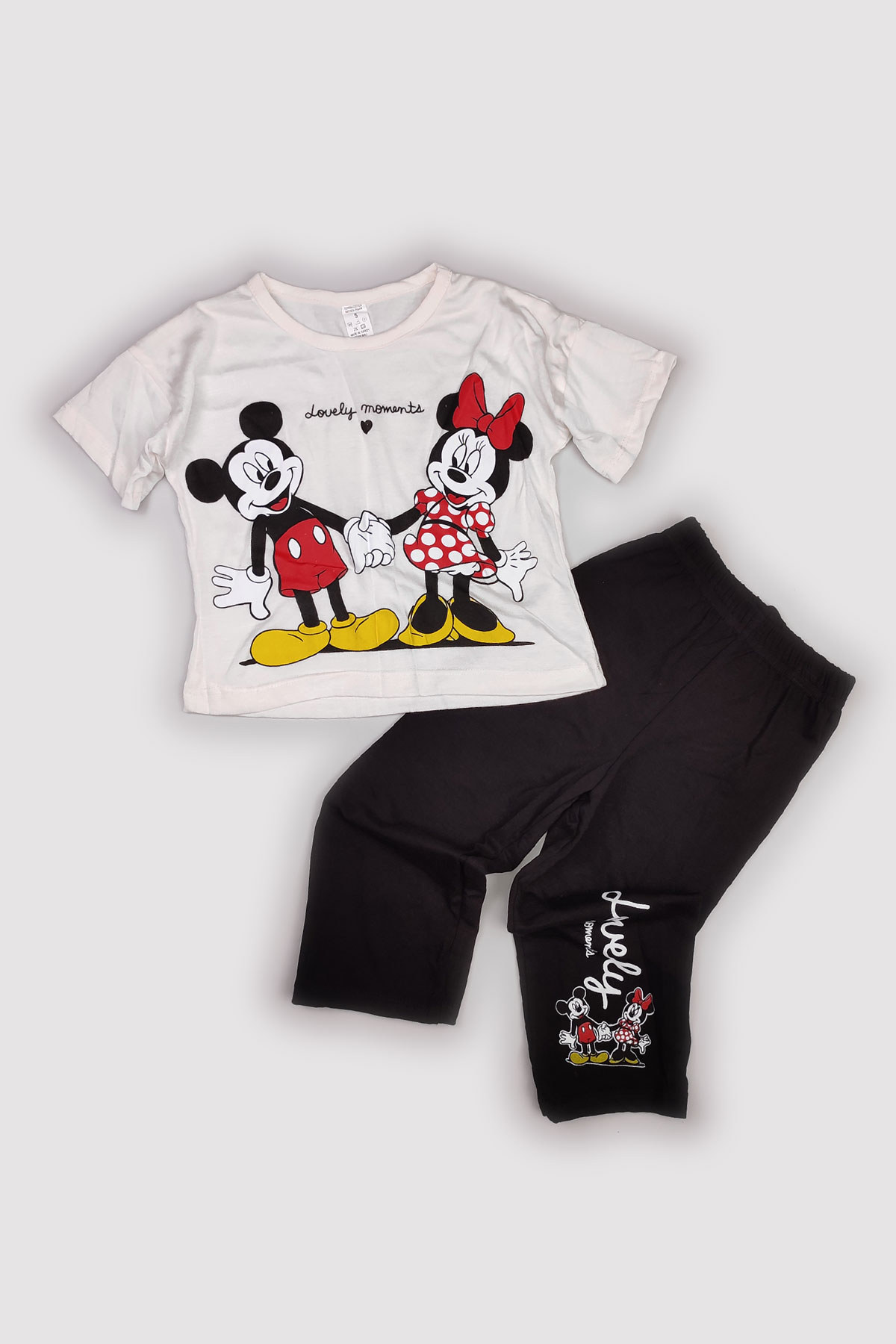Peki Yazlık Kız Çocuk Penye Mickey Minnie Mouse Baskılı Taytlı Takım 14837